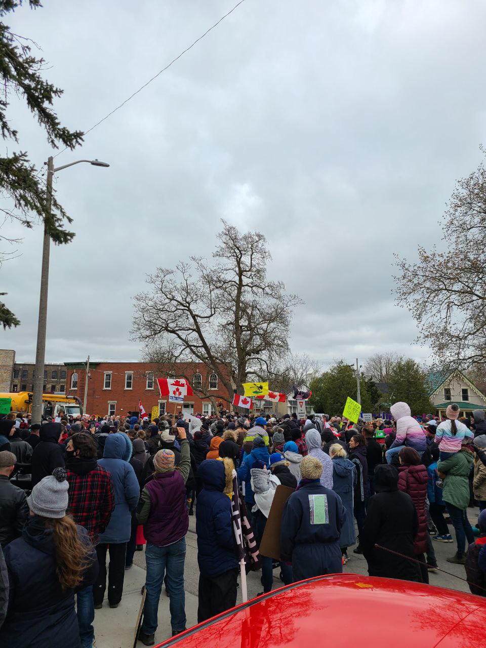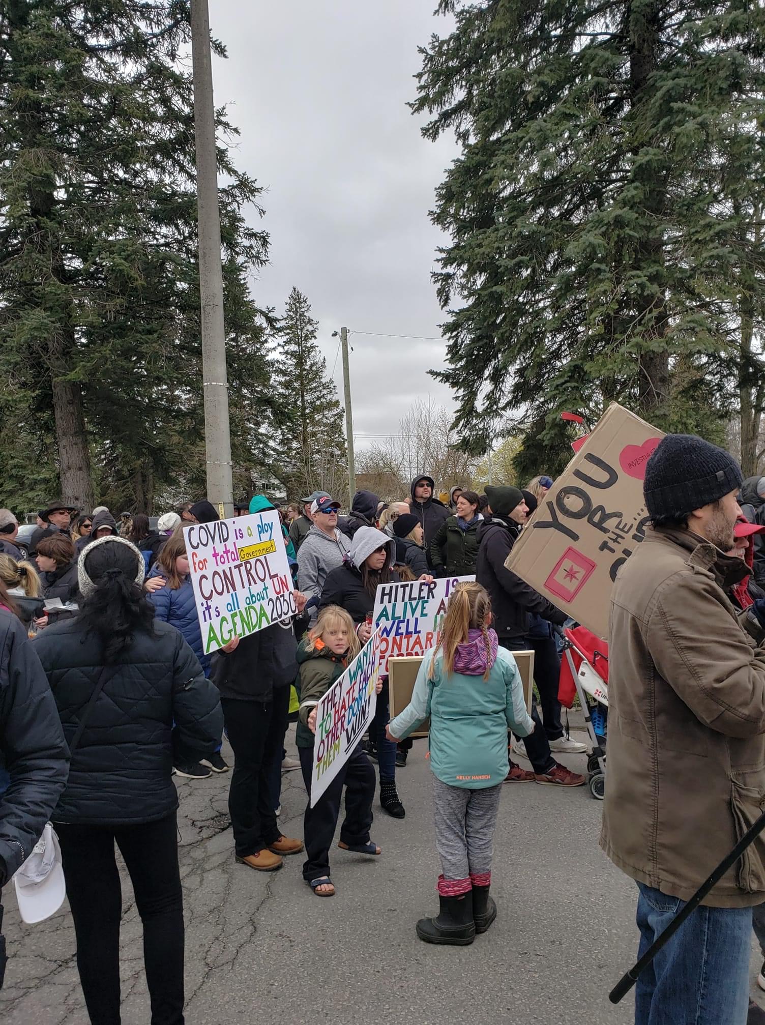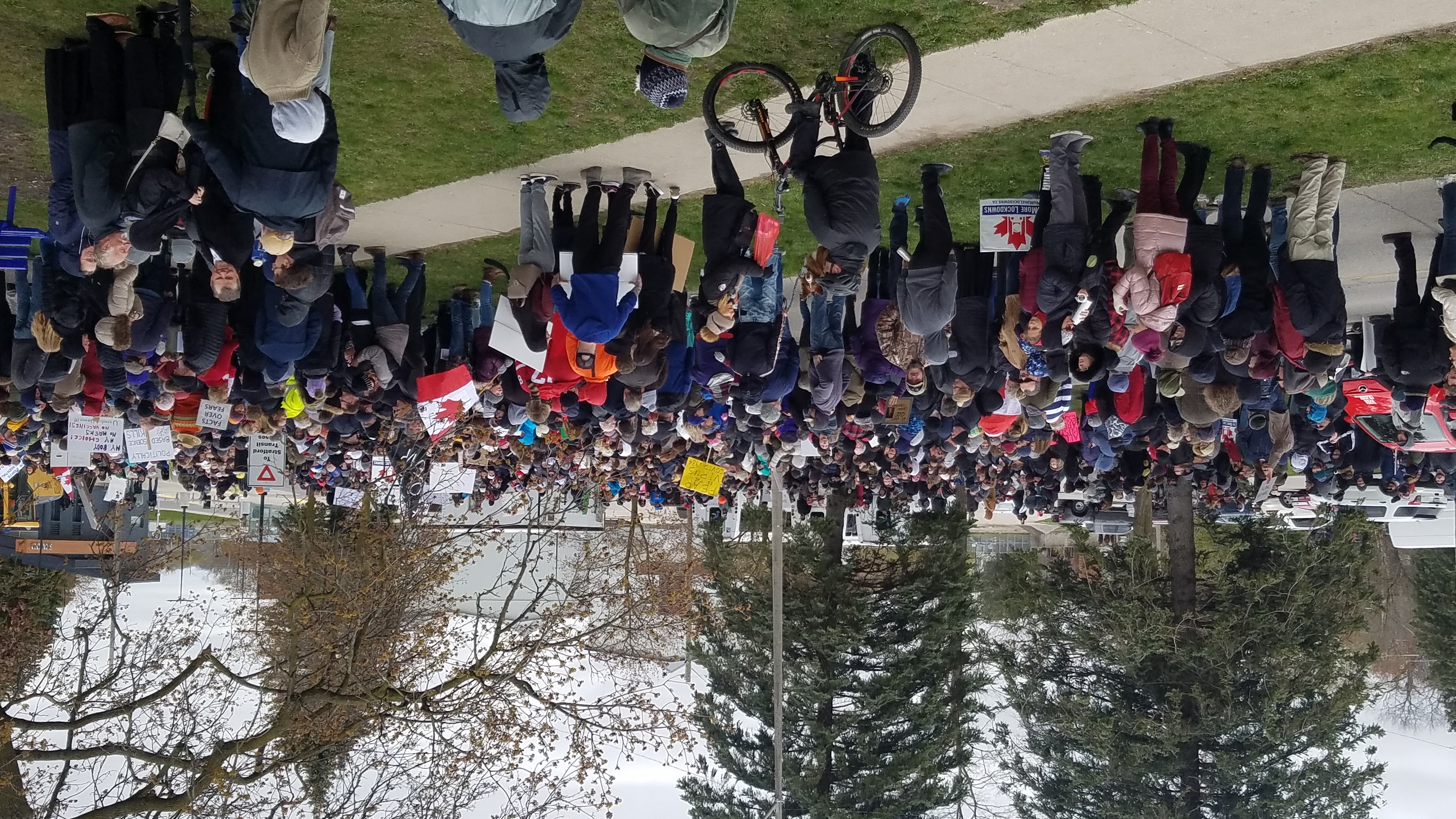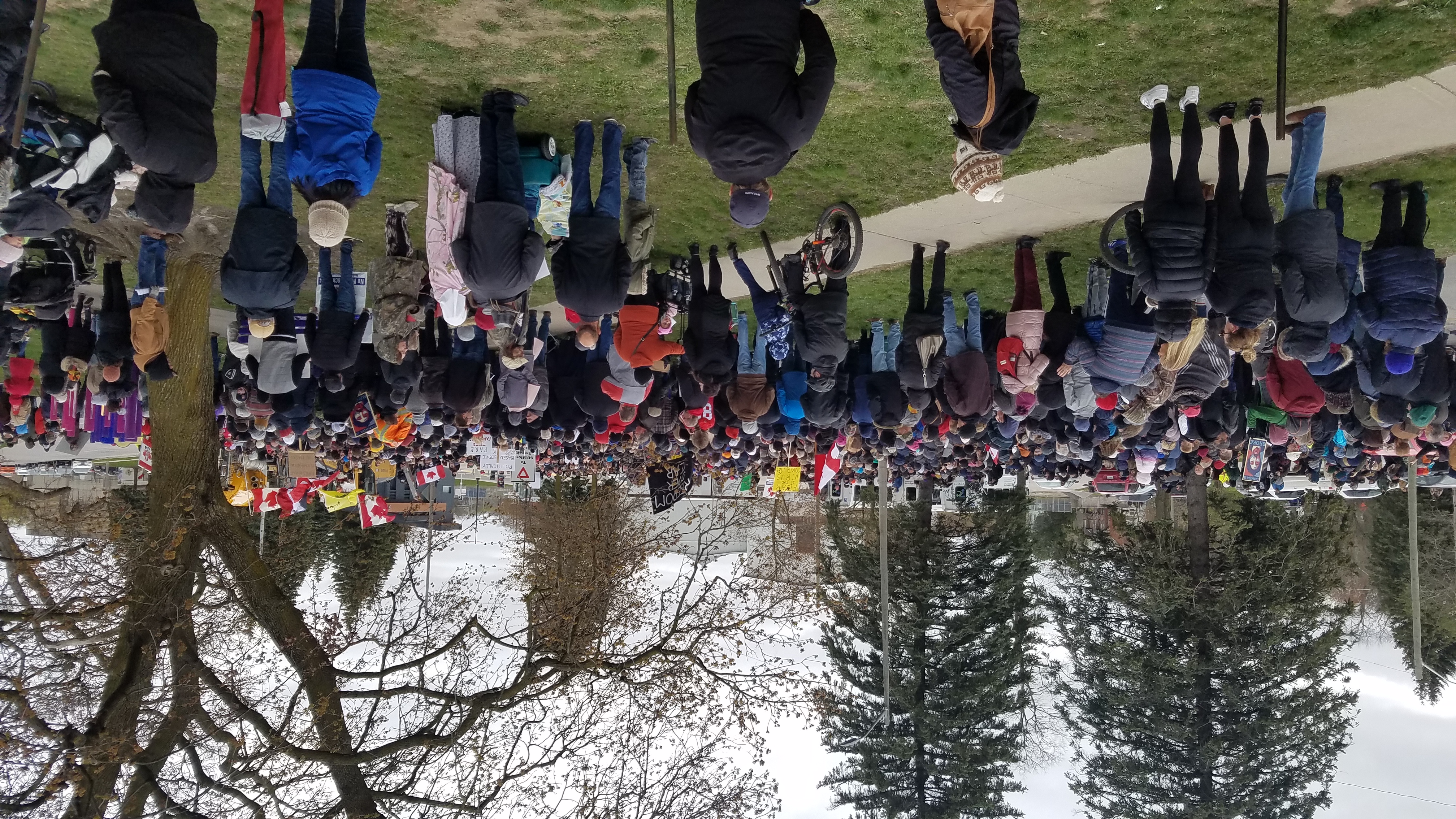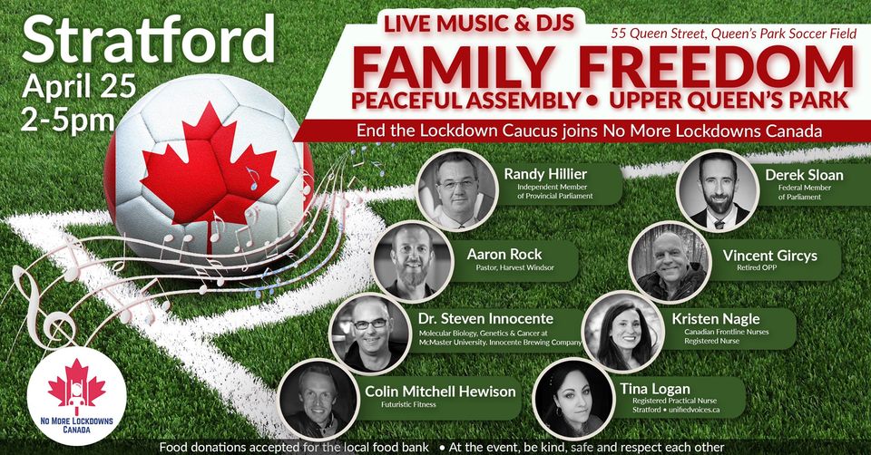 Sunday, April 25, 2021. Reports range from 600 to 1000 people attended the No More Lockdowns event (despite the city barricading Queen's Park, forcing usĀ to relocate to Shakespeare's Park during freezing, windy weather). Police were in attendance but did not interfere with the protest; nor with the city violating Criminal Code 176.2 ("Every one who wilfully disturbs or interrupts an assemblage of persons met for religious worship or for a moral, social or benevolent purpose is guilty of an offence punishable on summary conviction.") You can see photos and view the flyer please below...